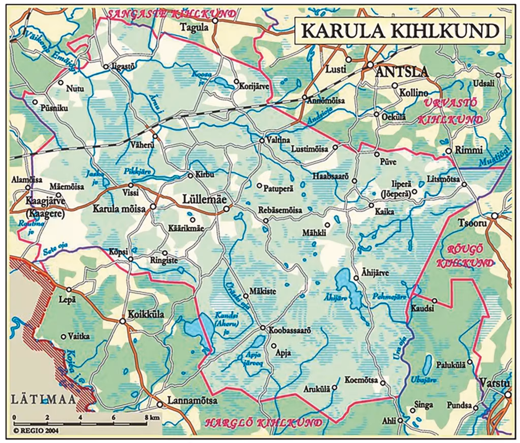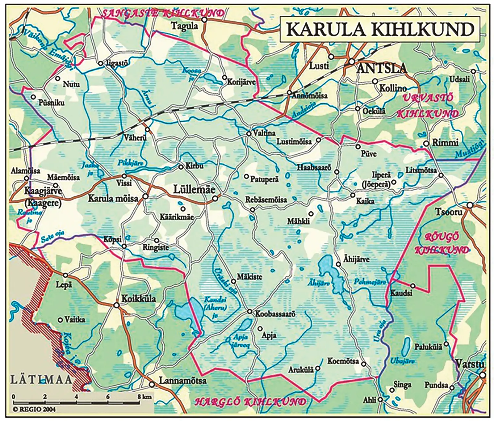Karula kihlkunna kaart raamatust «Võromaa kodolugu».